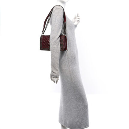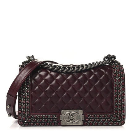Glazed Calfskin Quilted Medium Boy Chained Flap Bordeaux