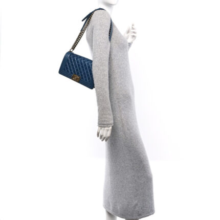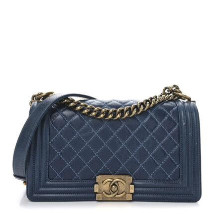 Glazed Calfskin Quilted Medium Boy Flap Blue