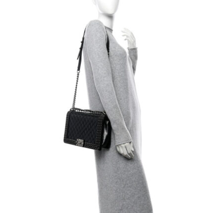 Glazed Calfskin Quilted New Medium Boy Chained Flap Black