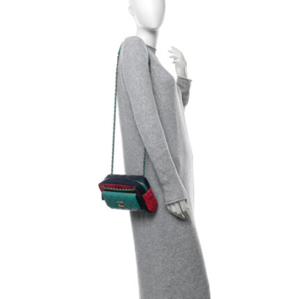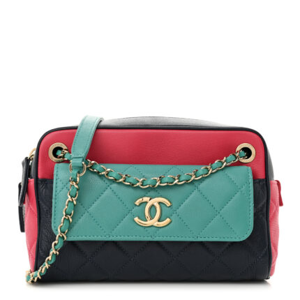 Goatskin Quilted Tri-Color Small In & Out Camera Case Navy Turquoise Pink
