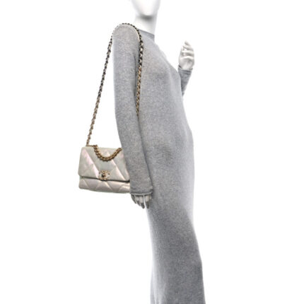 Iridescent Calfskin Quilted Medium Chanel 19 Flap White