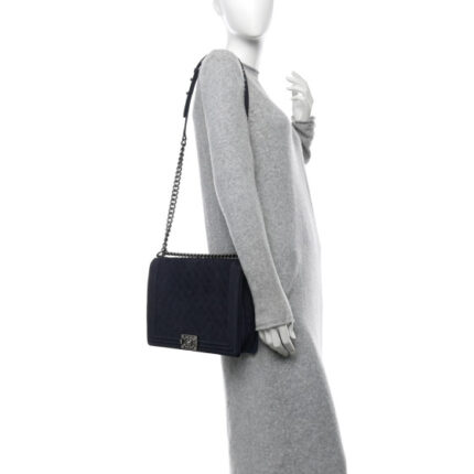 Iridescent Caviar Quilted Large Boy Flap Navy Blue