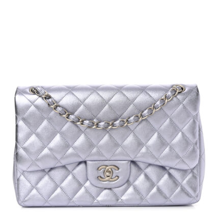 Metallic Lambskin Quilted Jumbo Double Flap Light Purple