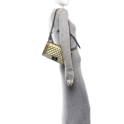 Metallic Lambskin Small Scaled Boy Flap Gold