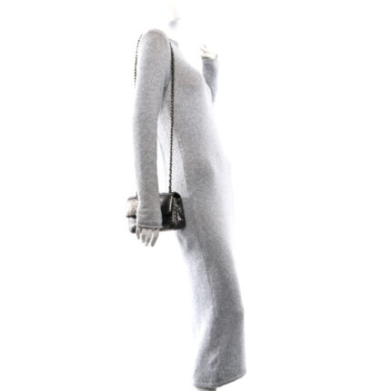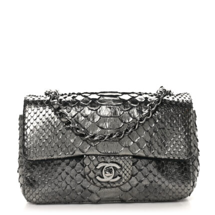 Metallic Snakeskin Mini Rectangular Flap Dark Silver