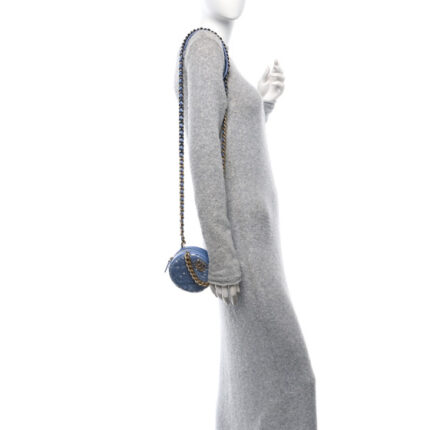 Sequin Chanel 19 Round Clutch With Chain Light Blue