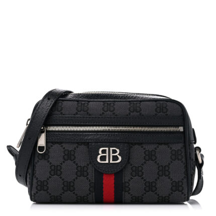 X BALENCIAGA BB Monogram Web Mini Ophidia Shoulder Bag Black