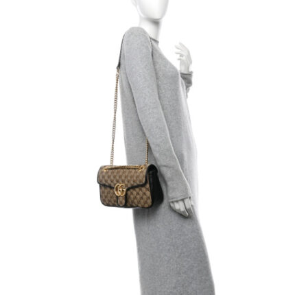 Monogram Matelasse Diagonal Small GG Marmont Shoulder Bag Beige Black