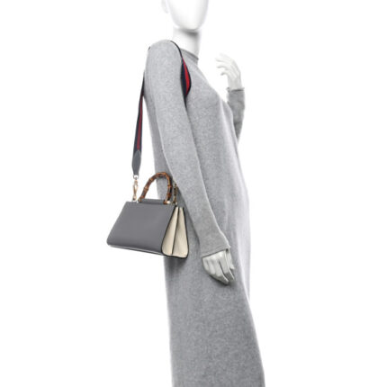 Nappa Bamboo Web Mini Nymphaea Top Handle Bag Deep Grey Mystic White