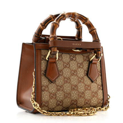 New Canvas Charisma Calfskin Crystal GG Monogram Mini Diana Tote Bag Camel Ebony
