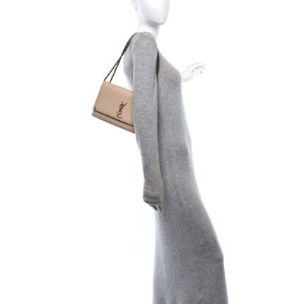 Smooth Calfskin Medium Braided Monogram Kate Satchel Nude Powder