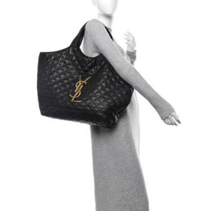 Lambskin Quilted Maxi Icare Shopping Tote Black