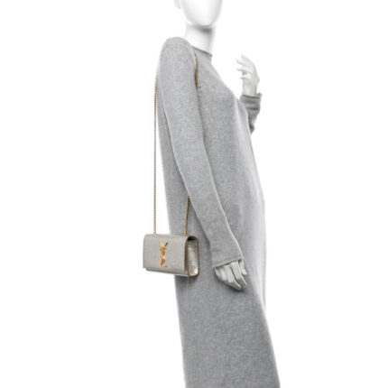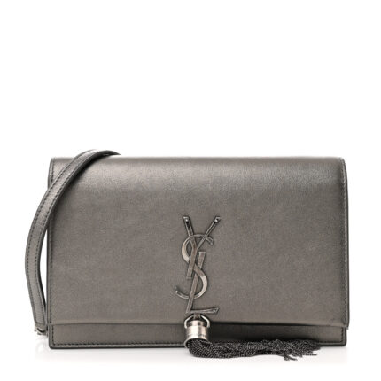 Metallic Smooth Calfskin Classic Monogram Kate Tassel Chain Wallet Grey