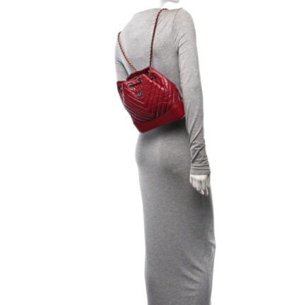 Aged Calfskin Chevron Quilted Small Gabrielle Backpack Dark Red Orange