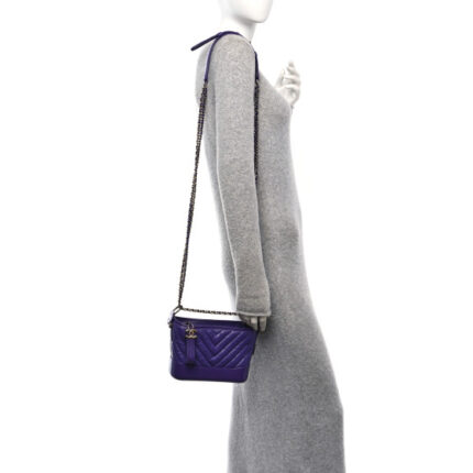 Aged Calfskin Chevron Quilted Small Gabrielle Hobo Purple
