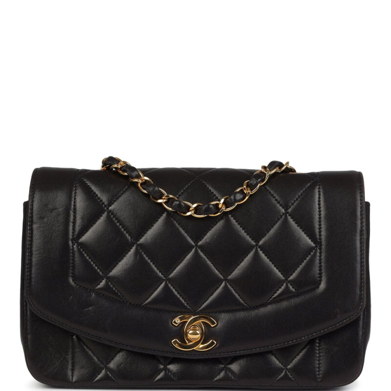 Vintage Chanel Small Diana Flap Bag Black Lambskin Gold Hardware