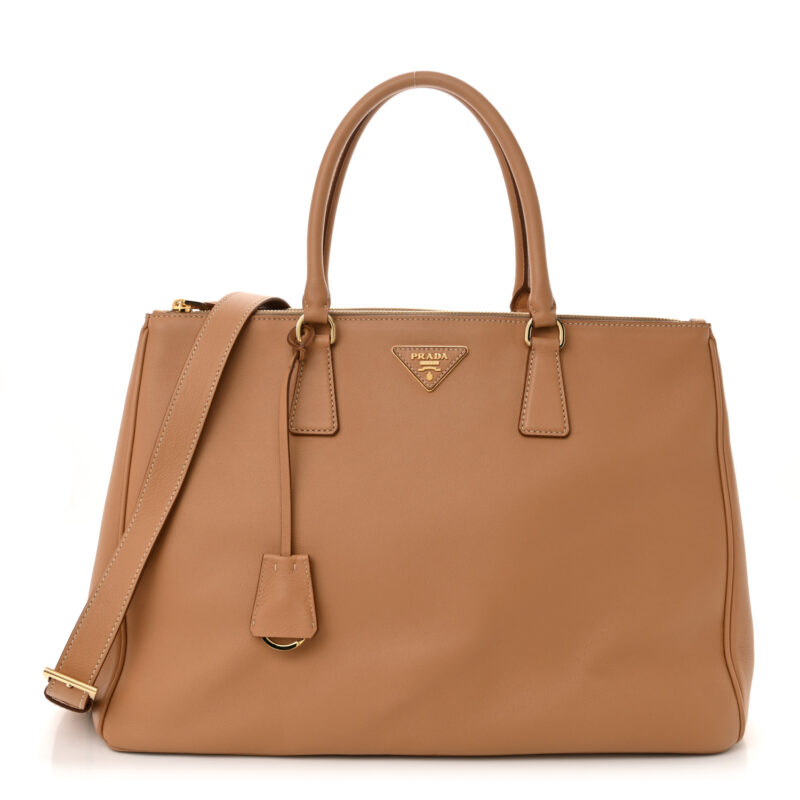 Soft Grain Calfskin Extra Large Galleria Double Zip Tote Natural