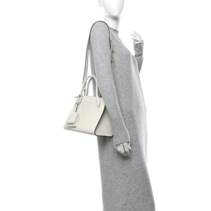 Saffiano Cuir Calfskin Small Monochrome Top Handle Tote White