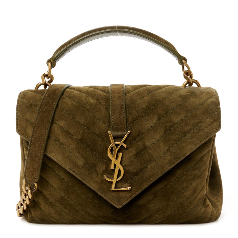 Suede Matelasse Chevron Monogram Medium College Bag Loden Green