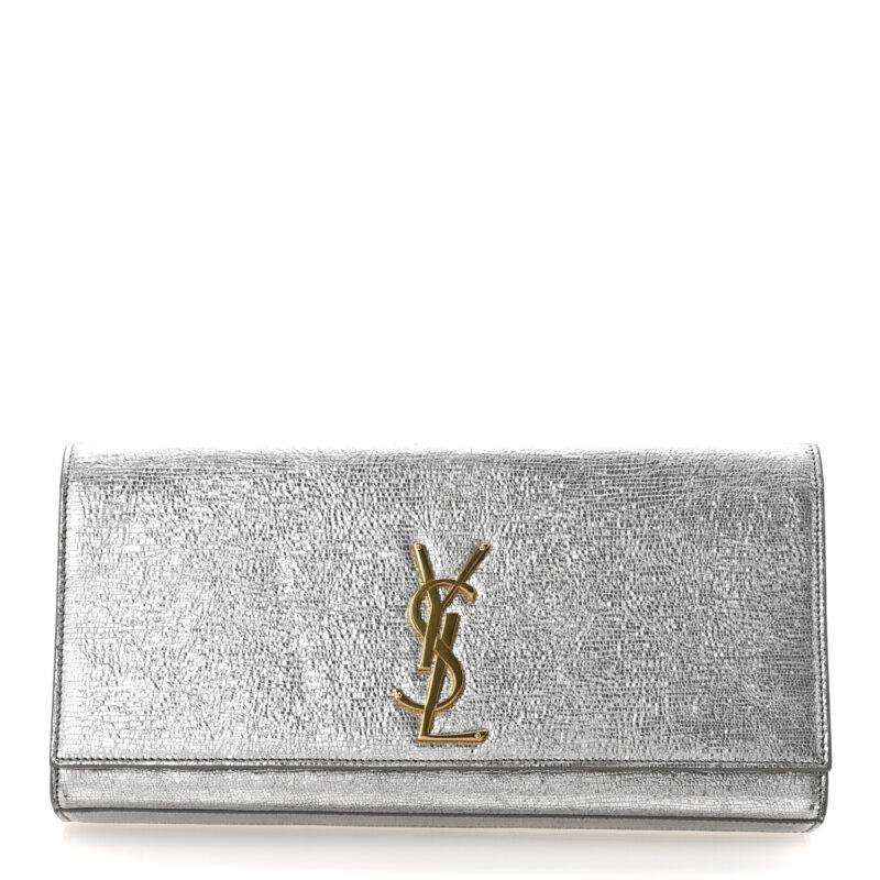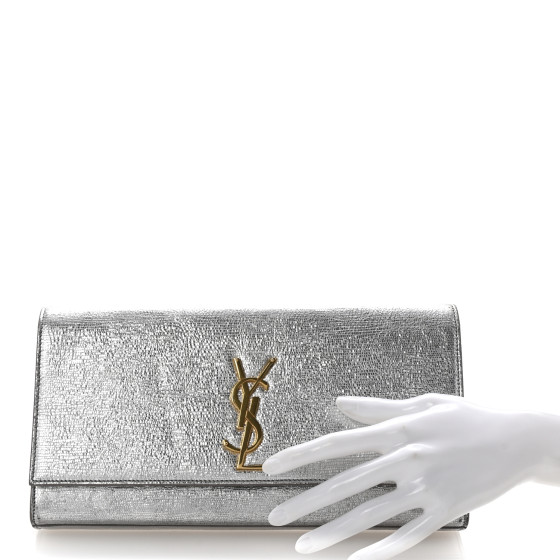 Textured Metallic Calfskin Classic Monogram Cassandre Clutch Silver