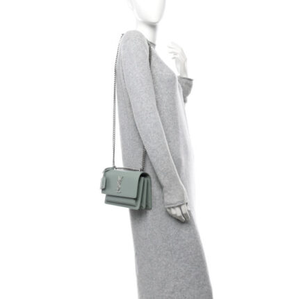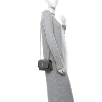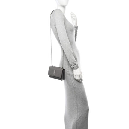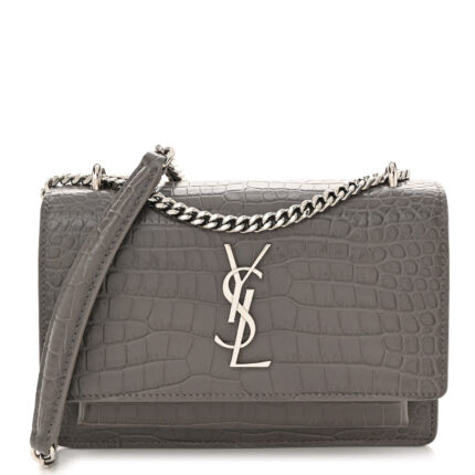 Calfskin Crocodile Embossed Monogram Sunset Chain Wallet Fog