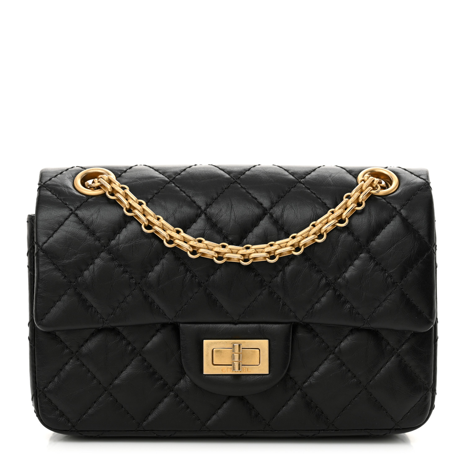 Aged Calfskin Quilted 2.55 Reissue Mini Flap Black