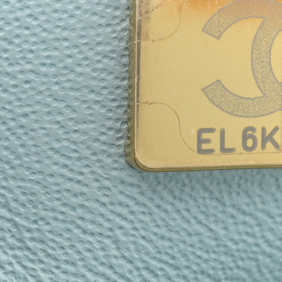- Materials: Diamond quilted aged calfskin leather in light blue