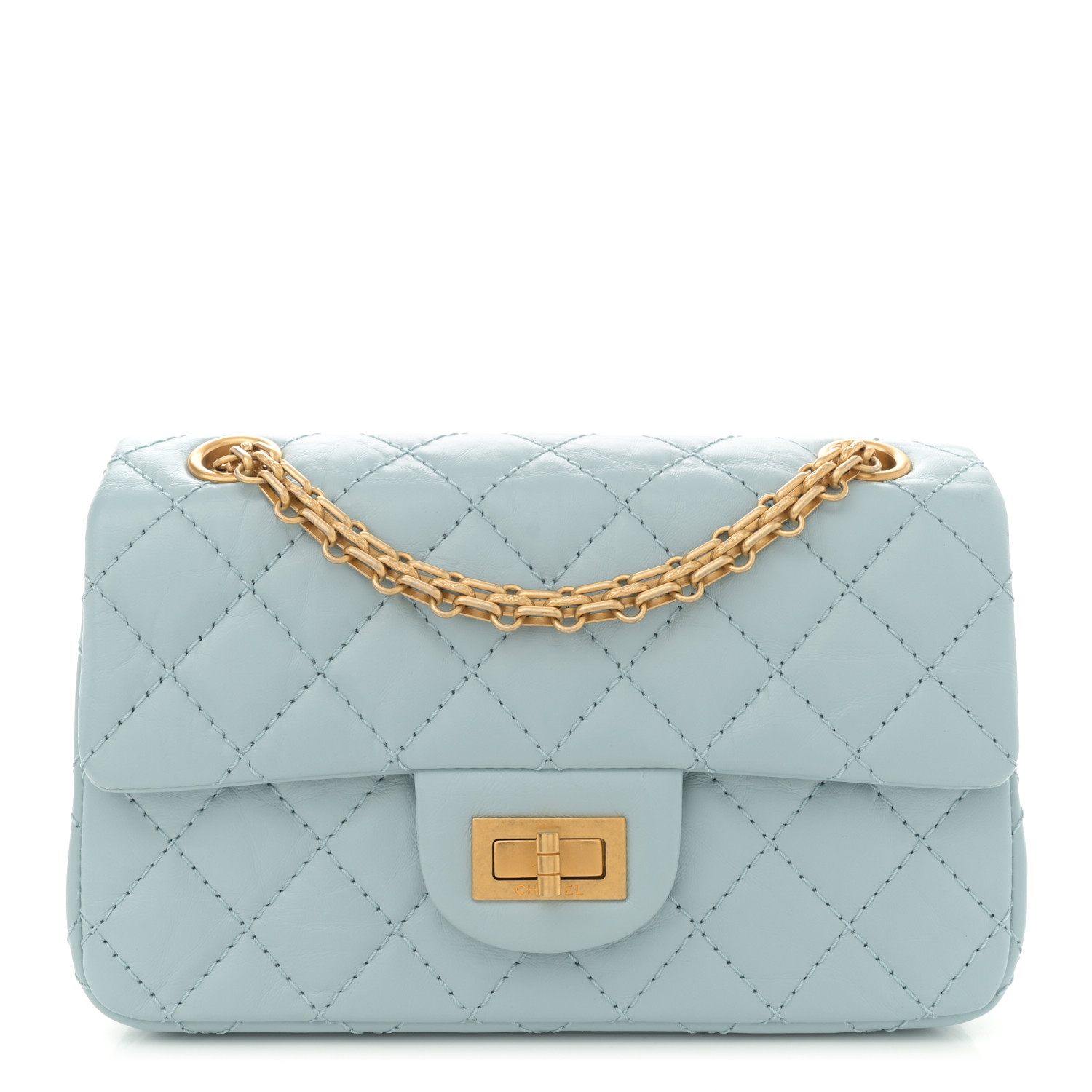 Aged Calfskin Quilted 2.55 Reissue Mini Flap Light Blue