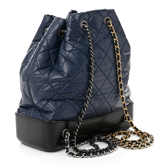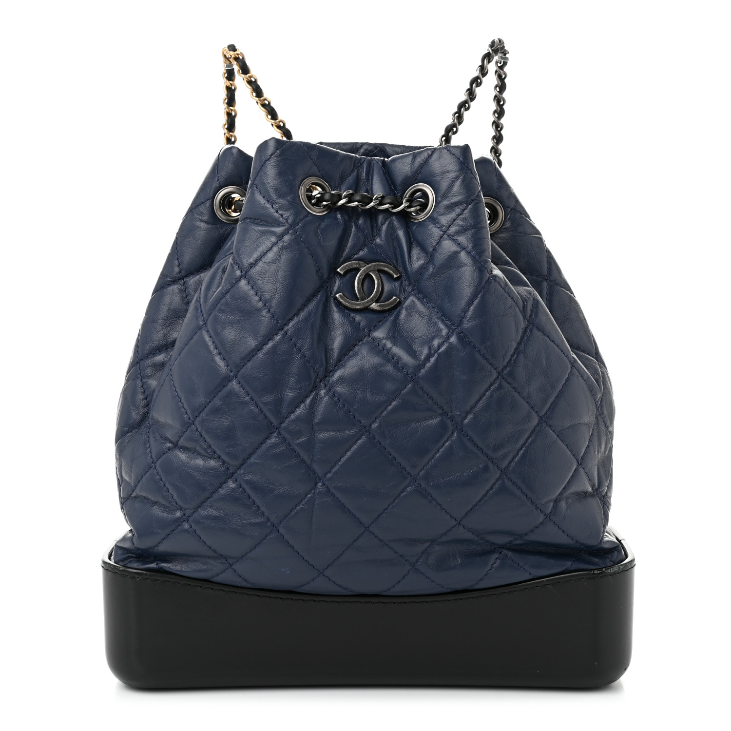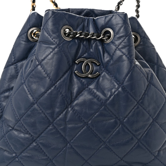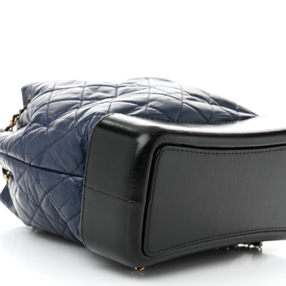 Aged Calfskin Quilted Gabrielle Backpack Navy Black