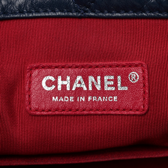 - Materials: Diamond-stitched aged dark blue calfskin leather