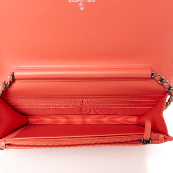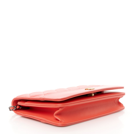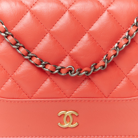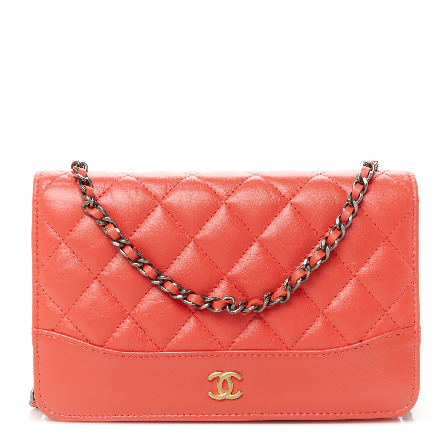 Aged Calfskin Quilted Gabrielle Wallet On Chain WOC Orange