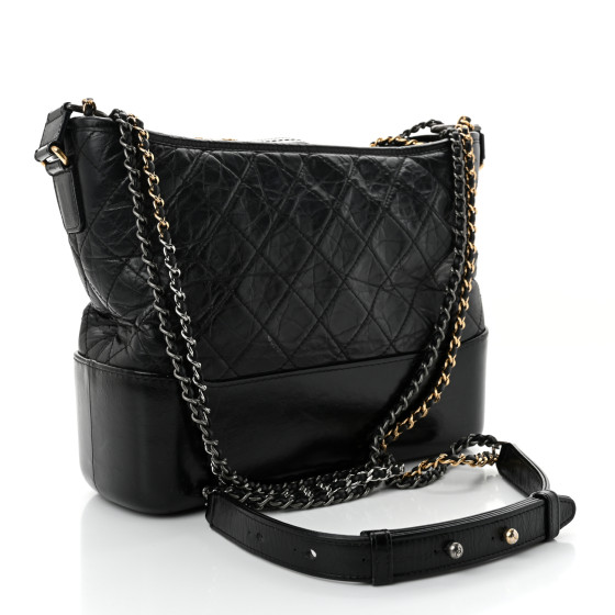 Aged Calfskin Quilted Medium Gabrielle Hobo Black