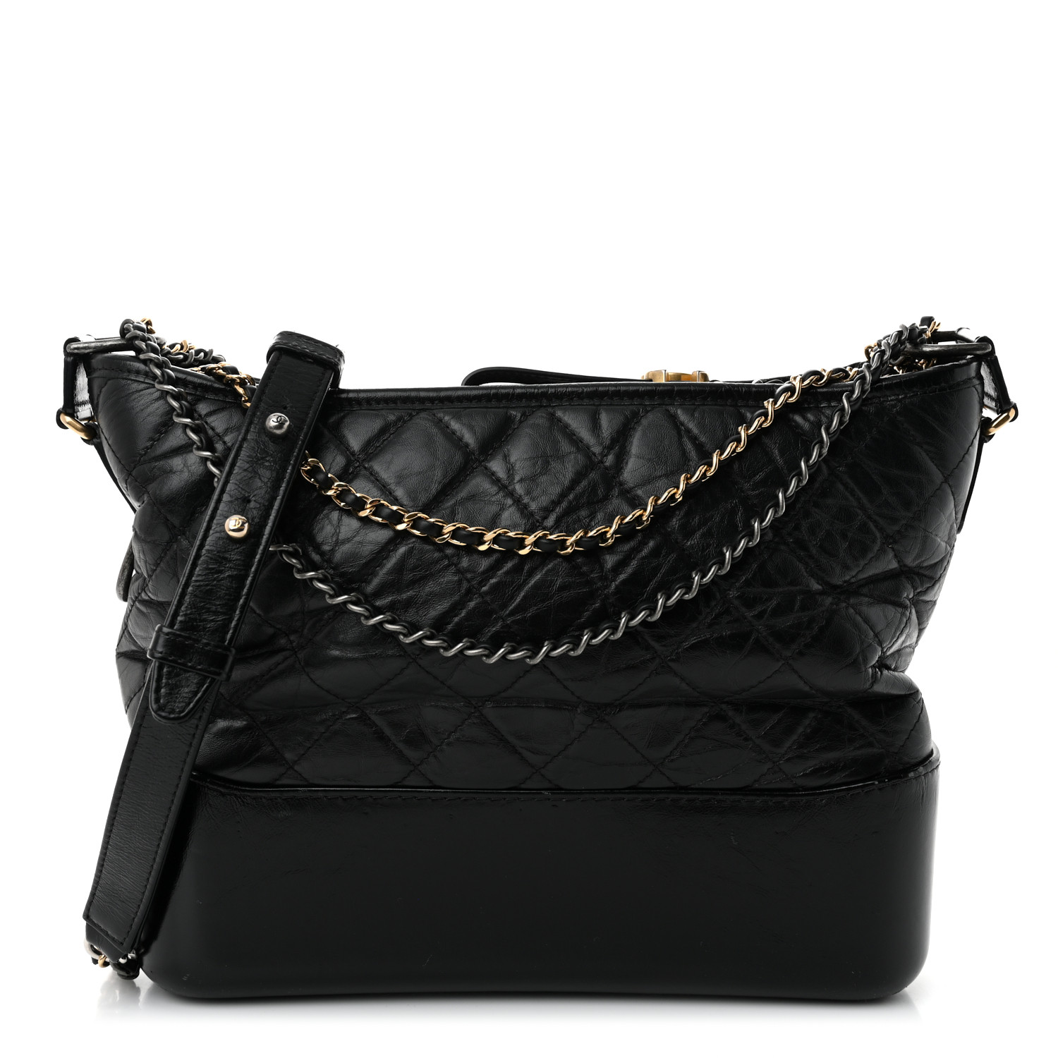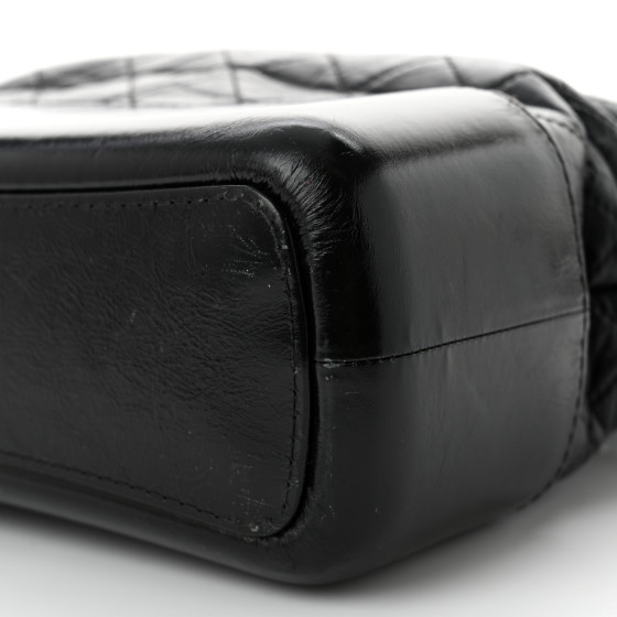- Materials: Aged diamond-quilted calfskin leather in black with a smooth, sturdy black leather base