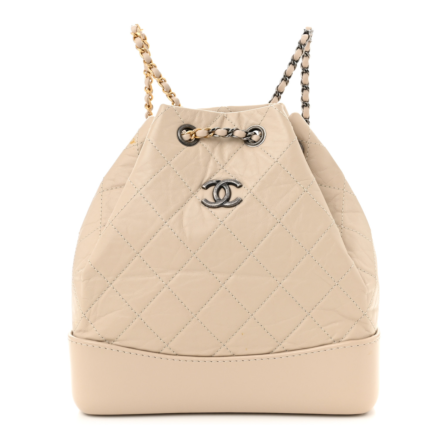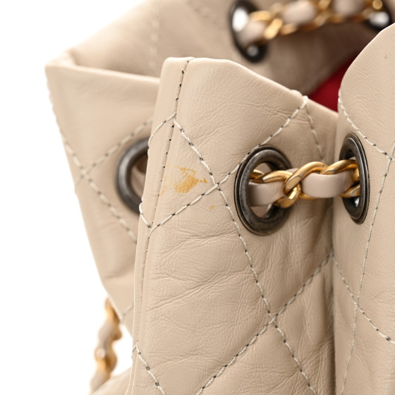 Aged Calfskin Quilted Small Gabrielle Backpack Beige