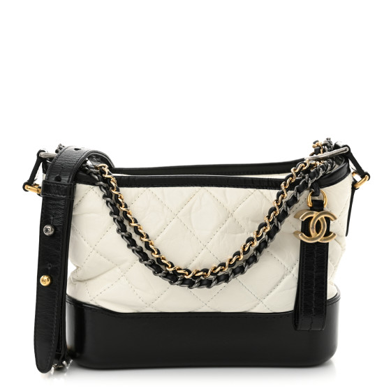 Aged Calfskin Quilted Small Gabrielle Hobo Black White