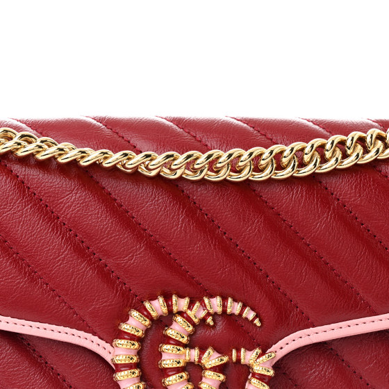 Azalea Calfskin Enamel Matelasse Diagonal Small Torchon GG Marmont Shoulder Bag New Cherry Red Wild Rose