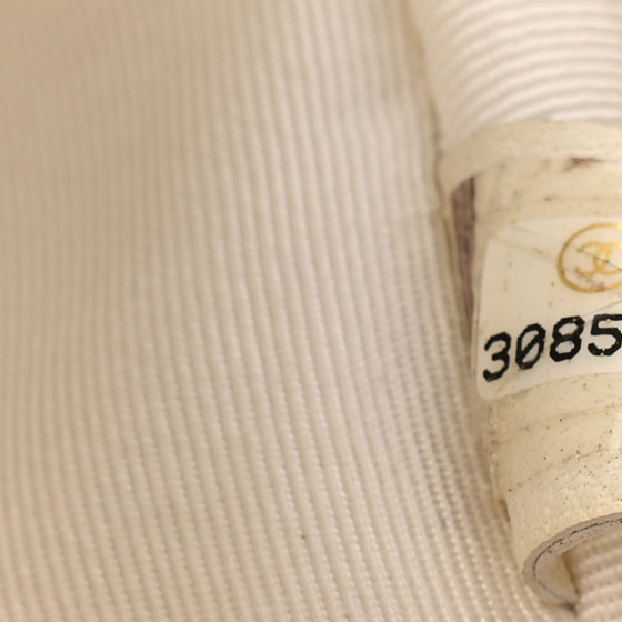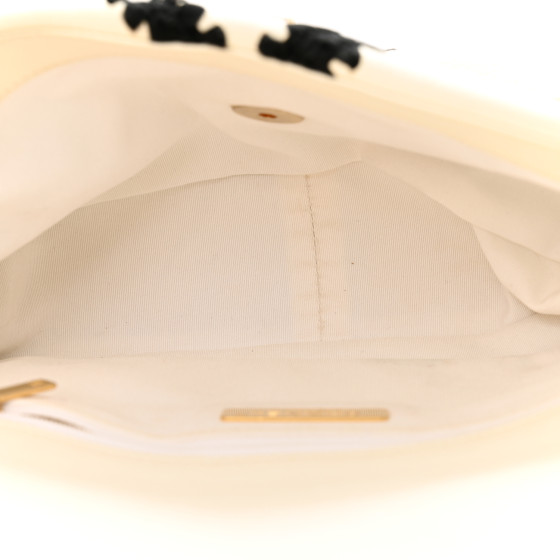- Materials: Oversized quilted goatskin leather in white with black stitching