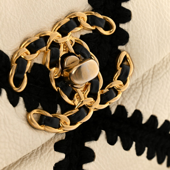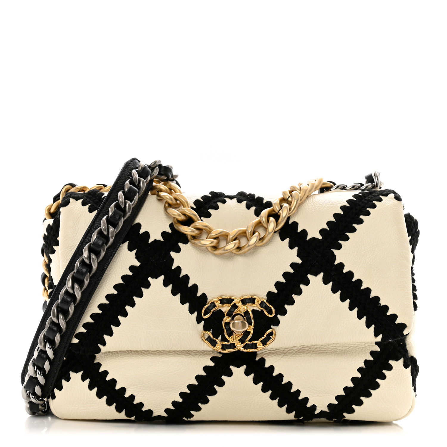Calfskin Crochet Medium Chanel 19 Flap White Black