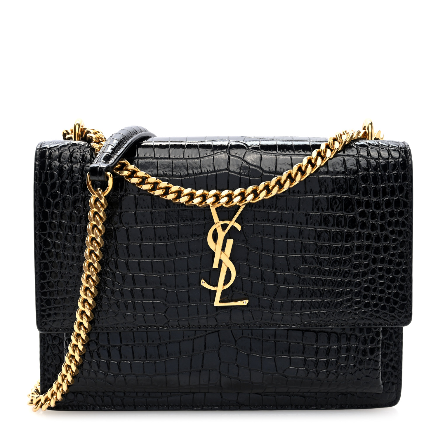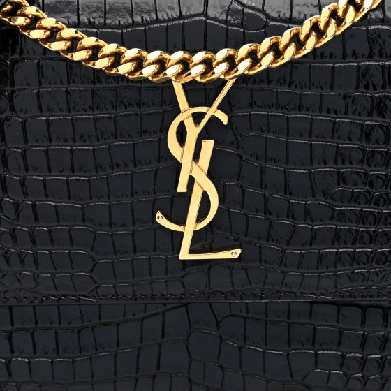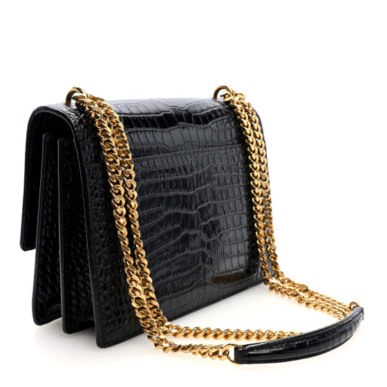 Calfskin Crocodile Embossed Medium Monogram Sunset Black