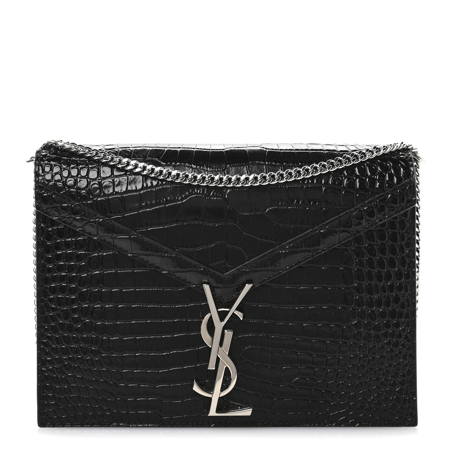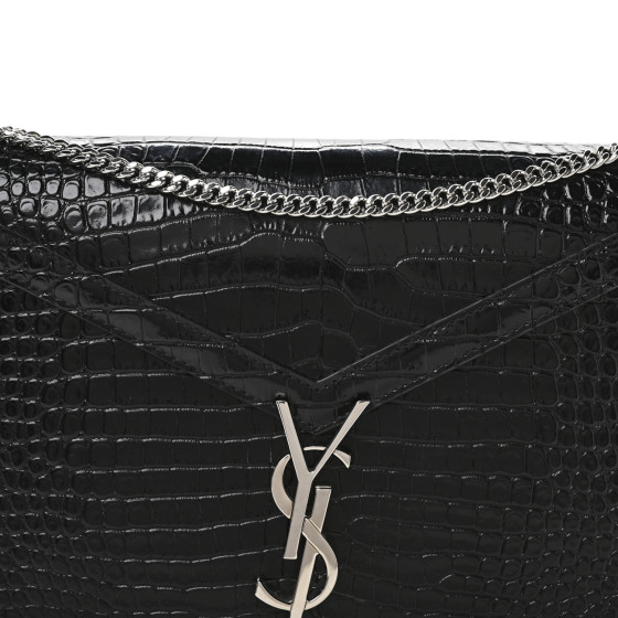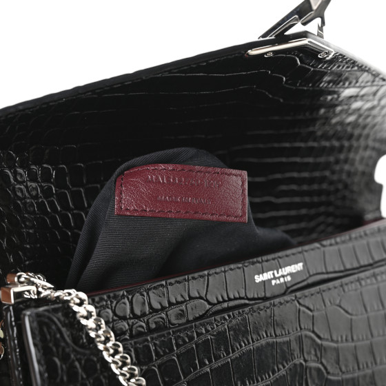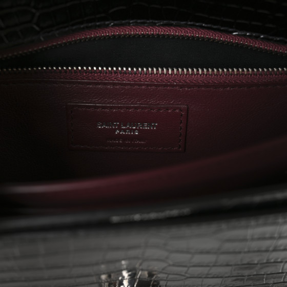 Calfskin Crocodile Embossed Monogram Cassandra Clasp Bag Black Rouge Legion
