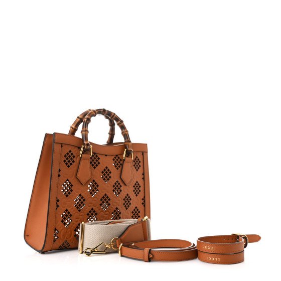 Calfskin Debossed GG Lase-Cut Small Diana Tote Bag Harness Brown