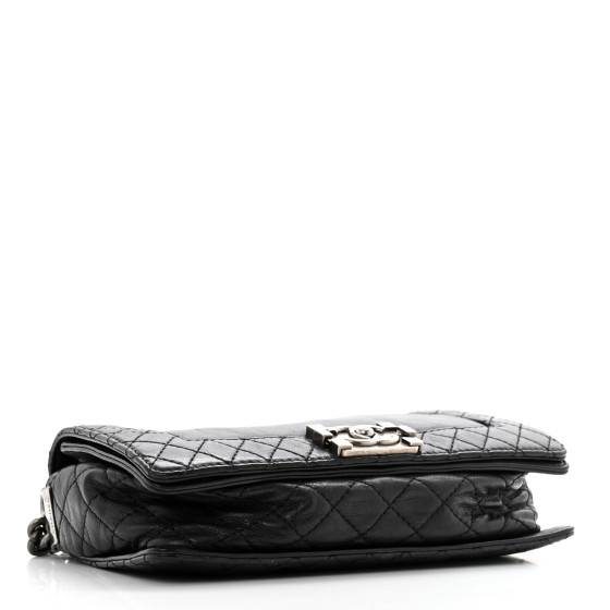 - Materials: Smooth calfskin leather in black with diamond-quilted trim