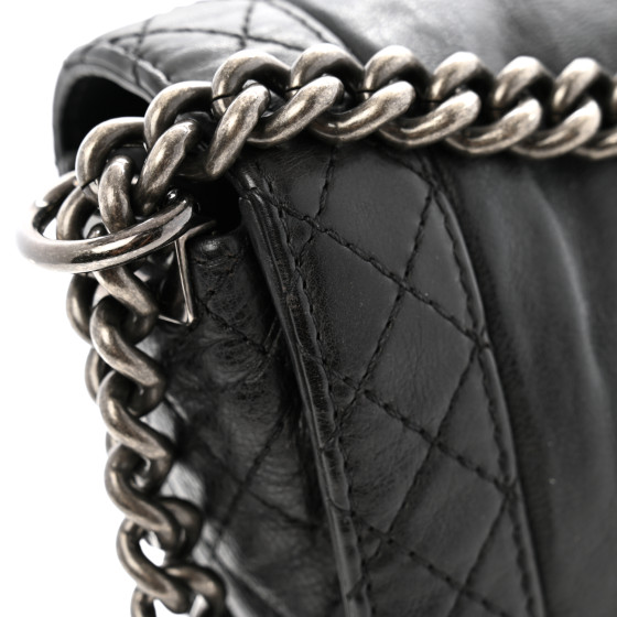- Strap/Handles: Aged ruthenium chain shoulder strap with a leather shoulder pad