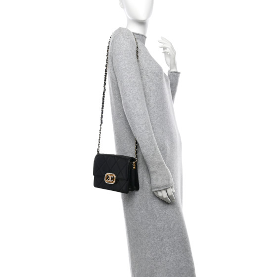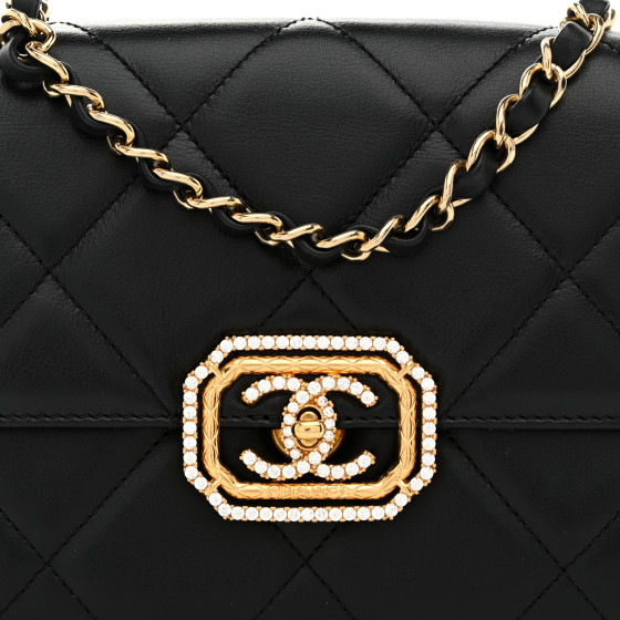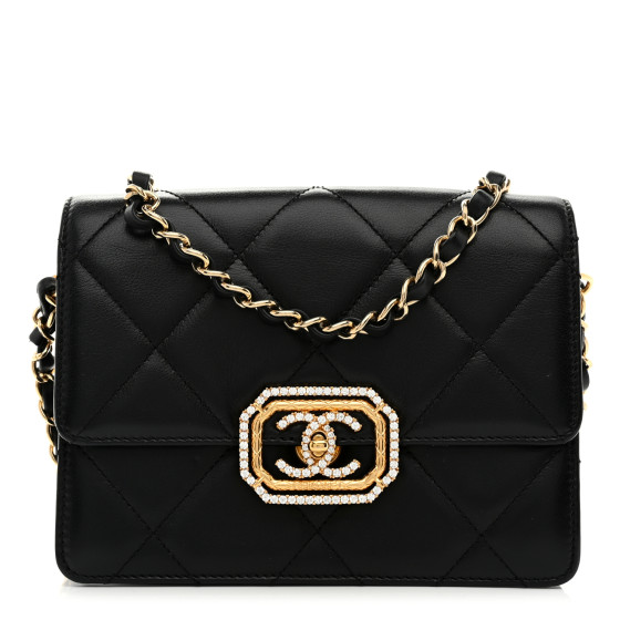 Calfskin Strass Quilted Mini Flap Black