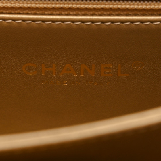 - Strap/Handles: Gold chain leather threaded shoulder strap and a gold crystal encrusted CC turn lock