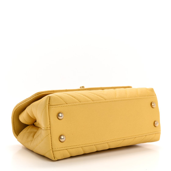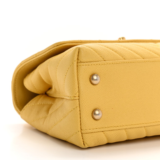 Caviar Chevron Quilted Mini Coco Handle Flap Yellow