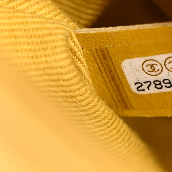 - Interior: Matching aged gold classic CC turn lock to a partitioned yellow fabric interior with a zipper pocket