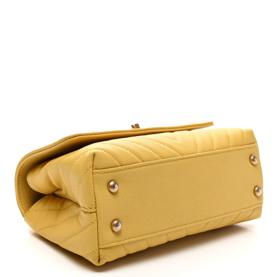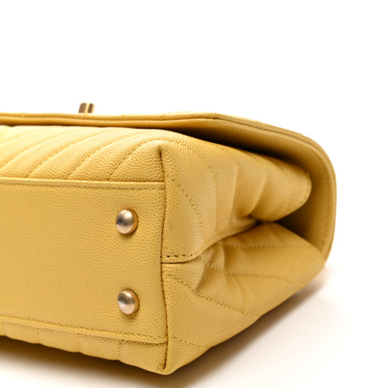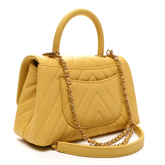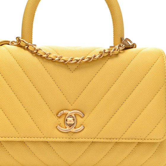 Caviar Chevron Quilted Mini Coco Handle Flap Yellow