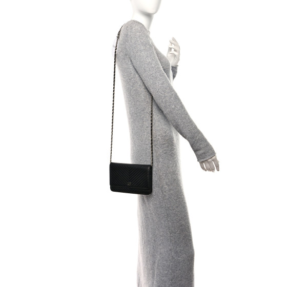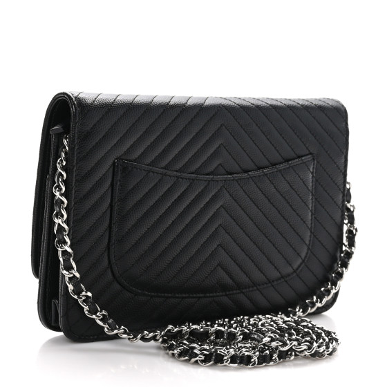 Caviar Chevron Quilted Wallet On Chain WOC Black