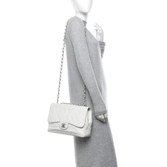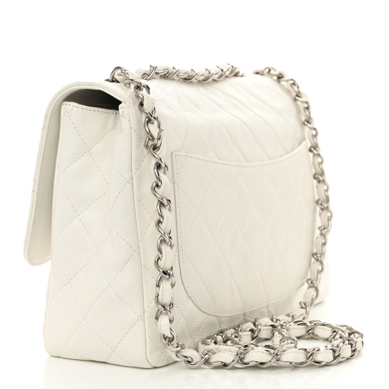 Inside, the Caviar Quilted Jumbo Single Flap White Replica features a soft textile lining with a flat zipped pocket to secure small valuables. A removable pouch doubles as a compact clutch or extra organizer. The open compartment provides flexible space for essentials, and side adjusters let you cinch the silhouette for a sleeker profile or loosen it for added room. Lightweight yet spacious, this piece fits your wallet, phone, keys, makeup case, a tablet or small laptop, and daily accessories with ease.